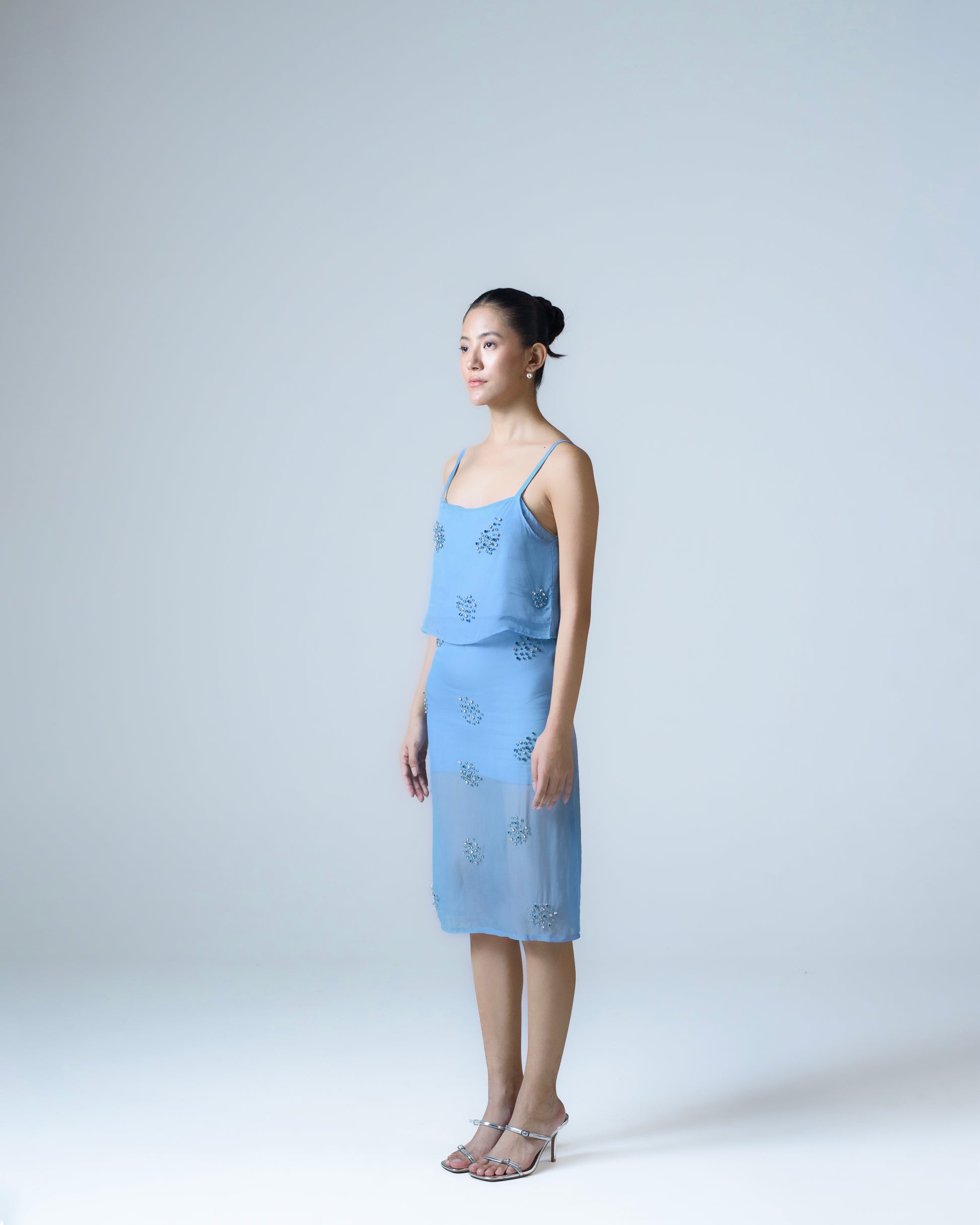 Hand-beaded embellishments in clustered motifs add sparkle and depth, making this piece a standout for festive and evening occasions.